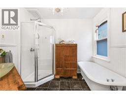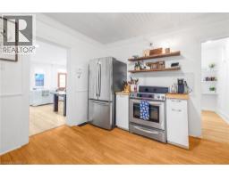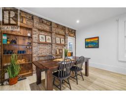 Welcome to this stunning all-brick century home, perfectly situated in the heart of Brantford. Overflowing with character and timeless charm, this home beautifully blends classic details with modern comfort. A large covered side porch invites you to relax with your morning coffee or unwind at the end of the day while enjoying the peaceful surroundings. Step inside to discover a warm and inviting open-concept living and dining area that seamlessly combines old-world charm with contemporary style. The living room features a striking shiplap accent wall, while the dining room is highlighted by a beautiful exposed brick wall—both adding texture and personality to the space. Large front windows allow an abundance of natural light to fill the rooms, creating a bright and welcoming atmosphere. The spacious kitchen is designed for both functionality and style, offering stainless steel appliances, a tile backsplash, and direct access to the side porch. Just off the kitchen, a convenient mudroom provides access to the backyard—perfect for keeping things tidy after outdoor activities. The main floor bathroom is a true showpiece, featuring a timeless clawfoot tub and a separate shower, offering a touch of vintage elegance. Upstairs, you’ll find two comfortable bedrooms, including a bright and cozy primary bedroom that serves as a peaceful retreat. Outside, enjoy the fully fenced backyard complete with a large stone patio and a garden area—ideal for entertaining, gardening, or simply enjoying the outdoors in privacy. Recent updates and features include a new roof (2025) and a Telus security system for added peace of mind. This beautiful home combines historical charm with thoughtful updates, offering the perfect blend of comfort, character, and modern convenience in a prime Brantford location. Book your showing today! (id:61594)
