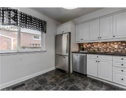 Rare find! Welcome to this meticulous bungalow with 1625sf of living space nestled in a quiet and family-friendly neighbourhood. With a very private yard surrounded by mature trees and professional landscaping, the property boasts exceptional curb appeal with its brick and stone façade, long driveway with space for five cars, and a covered carport. Step inside to find a bright and welcoming interior designed for comfort and functionality. The spacious living and dining area is enhanced by a large window, crown moulding, and gleaming hardwood floors. The modern eat-in kitchen features stainless steel appliances, tile backsplash, Scandinavian-style open shelving, and a walkout to the side yard with separate basement entry. Three well-sized bedrooms, all with hardwood flooring, and a 4-piece main bathroom complete the main level. The lower level offers endless potential with a partially finished basement, spacious rec room, laundry, an additional bathroom with shower, and a convenient side entry, making it ideal for extended family living or future rental opportunities. The private backyard is truly a retreat, featuring upper and lower decks including a privacy wall, a hot tub with a new motor and cover (2023), a newer shed, and plenty of green space surrounded by gorgeous mature trees—an inviting setting for kids, pets, or family gatherings. Recent updates include a roof replacement (2018), exterior doors and windows (2012), and ongoing modern touches that make this home move-in ready. Ideally located with no rear neighbours. Just minutes from the lake, downtown Burlington’s shops and restaurants, schools, parks, and major highways, this property blends everyday convenience with quiet suburban living. A wonderful opportunity to settle into one of Burlington’s most peaceful pockets—perfect for families looking for space, privacy, and a welcoming community. (id:61594)