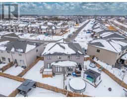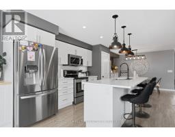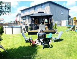 Welcome to1423 Monarch Drive! Discover this stunning 3-bed, 4-bath (2+2) semi-detached home, perfectly situated in Kingston's Woodhaven community This bright and airy residence features a modern open-concept main floor with upgraded light fixtures throughout, perfect for both busy family life and weekend entertaining. The chef-inspired kitchen boasts a generous center island, sleek quartz countertops, and a dedicated coffee bar with extra pantry storage-an ideal setup for morning routines and holiday feasts. Upstairs, you'll find three generous bedrooms, including an extra large primary retreat complete with a walk-in closet and a private 4-piece ensuite. For added convenience, the laundry room is located on the second level. The finished lower level offers a versatile recreation room with built-in speakers, pot lights, & 2 pc bathroom, ideal for a home office or gym. Step outside to your own backyard oasis. This fully fenced, pie-shaped retreat boasts a large deck, an inviting above-ground pool, and a stylish hard-top gazebo, creating the perfect setting for summer BBQs and year-round relaxation. Located just steps from parks, walking trails, and the brand-new St. Genevieve Catholic Elementary School, this home offers the perfect blend of upgraded style and unbeatable convenience (id:61594)