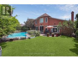 INCREDIBLE VALUE. Set within the prestigious Fairway Hills enclave of Glen Abbey, this absolutely stunning 4+1 bedroom home offers timeless elegance, thoughtful design, and resort-style living, within the renowned Abbey Park Highschool district. Beautifully maintained and rich in designer finishes, the home features expansive principal rooms ideal for both everyday living and grand entertaining. The impressive family room highlighted by soaring cathedral ceilings and a gas fireplace walks out to a private backyard oasis, where an inground pool, mature landscaping, and irrigation system create a serene and secluded retreat. At the heart of the home, the spacious family-sized eat-in kitchen is appointed with stainless steel appliances and flows effortlessly into the great room and the oversized formal dining room, perfect for hosting memorable gatherings. Throughout the home, maple hardwood floors, limestone flooring, crown moulding, wainscoting, and custom draperies reflect exceptional craftsmanship and attention to detail. The primary suite is a peaceful sanctuary, featuring a luxurious spa-inspired ensuite with a glass-walled steam shower, jacuzzi bathtub, limestone floors, granite countertops, and custom window coverings-an indulgent space to begin and end each day. The professionally finished basement extends the living space with an oversized recreation room, a fifth bedroom, and a full bathroom-ideal for guests, extended family, or a nanny suite. Perfectly positioned across from a scenic path leading to the golf course, this remarkable home offers the lifestyle Glen Abbey is celebrated for-morning walks with coffee, impromptu rounds of golf, and refined living in one of Oakville's most sought-after communities. (id:61594)