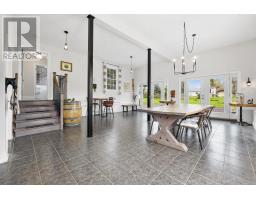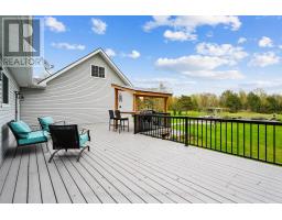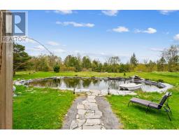 Set on 29 picturesque acres, this Cape Cod-style home is crafted for memory-making, from sunlit mornings on the front porch to starlit evenings under the open sky. A seamless blend of comfort and elegance makes everyday living and entertaining effortless. The bright living room features crown moulding, a charming wood-burning fireplace, and an open-concept layout that flows into a formal dining room with a large window and access to the deck, perfect for everything from intimate dinners to festive gatherings. At the heart of the home is a beautifully appointed kitchen with a spacious island, stainless steel appliances, tile backsplash, and pendant lighting. The adjoining breakfast nook adds warmth and charm to every meal. An expansive entertainment space offers a unique venue for larger events, boasting 11-foot ceilings, tall windows, multiple glass doors, and a movable counter that transforms into a walk-up bar. Above, a finished loft provides flexibility for a potential guest room, home office, or creative play space. The main-floor primary suite is a peaceful retreat with a walk-in closet and a spa-like ensuite featuring a tub and glass shower. A guest bath and main floor laundry add convenience. Upstairs, two generous bedrooms with dual closets share a full bath with a double vanity. The finished lower level enhances the living space, offering in-law potential with a rec room, games area, wood stove, guest bedroom, bathroom, and walkout to a covered patio. Outside, a sprawling deck with a covered BBQ area sets the stage for al fresco dining. Stroll the landscaped path past a fountain to a raised pergola overlooking a private swimming pond with a top-tier non-toxic commercial liner and gentle waterfall. Explore groomed nature trails, spot local wildlife, or tap your own sugar maples for syrup. Located on a priority-plowed road for easy year-round access and just a short drive to town, this is where a slower, more intentional lifestyle begins. (id:61594)
