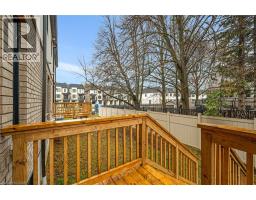 Welcome to Unit 24 at The Vineyard Townhomes, a refined French-inspired community ideally located on Elgin Street North. Designed with timeless architectural details including elegant stonework, arched rooflines, and sleek black accents, this residence offers a rare blend of style, comfort, and privacy. Positioned near mature trees, the home enjoys a peaceful backdrop seldom found in townhome living. Step inside to discover 9-foot ceilings, wide plank flooring, and abundant natural light throughout the main level. The thoughtfully designed open-concept layout creates a seamless connection between living, dining, and kitchen spaces, ideal for both everyday living and entertaining. The kitchen features stone countertops, a generous island with seating, crown moulding on cabinetry, tile backsplash, under-cabinet lighting, and an undermount stainless-steel sink, combining function with modern sophistication. Adjacent dining and living areas are bright and inviting, with large windows and a walkout overlooking the treed outdoor setting. The upper level offers a well-appointed primary suite with room for a king-size bed, a walk-in closet, and a private ensuite complete with a rain shower and pressure-balanced fixtures. Two additional bedrooms provide flexibility for family, guests, or a home office, while second-floor laundry adds everyday convenience. The unfinished basement offers excellent future potential for additional living space, a recreation area, or storage. Built with efficiency and long-term value in mind, features include triple-glazed energy-efficient windows, a 30-year asphalt shingle roof, R-60 attic insulation, ERV system, smart programmable thermostat, insulated garage door, poured concrete porch, fully sodded lot, 100-amp electrical service, gas-fired rental hot water heater, and two exterior water taps. Conveniently located minutes from parks, schools, shopping, transit, and with easy access to Highway 401 and Highway 8. *Virtually staged*. (id:61594)