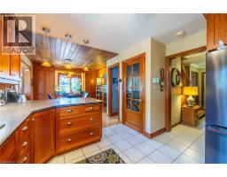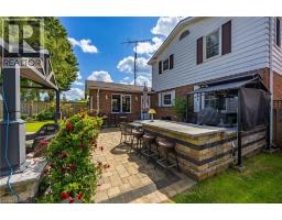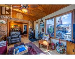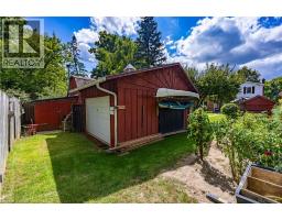One owner 2 storey home ready for a new family. Large living room complete with a gas fireplace and loads of room to relax. The dining room is large enough for family gatherings. The kitchen and entryway have ceramic tile for ease of maintenance. The dinette is a bonus and can be used daily or as overflow for larger families. The sunroom is to die for with large wrap-around windows and dual skylights and a beamed ceiling. A 2 pc. bathroom completes this floor. The upstairs includes a 4 pc. bathroom and 3 bedrooms all with closets. The basement has another 3 pc. bathroom, a family room with a fireplace, a large laundry room with room for a work desk. A storage room completes the basement. All rooms on main and upper floors are hardwood. Step outside from the sunroom to a professionally landscaped rear yard. The 22' X 21' stone patio with a 12' X 12' gazebo complete with stone accents, sets the mood for outdoor entertaining. A stone bar area, complete with built-in fridge unit is always popular. An 8.5' X 8.5' Grand River shed for your storage needs is also included. As is a 10' X 8' shed for even more storage. At the rear is a 16' X 22' shop joined by a doorway to the 15' X 22' garage complete with auto garage door opener. The rear of the property is serviced by a fire lane. Sit on the covered front porch complete with a pergola and watch the world go by. A single car garage with double paved driveway also. All this and on the Pumpkinfest & Christmas parade route can be yours. Stop and have a look. (id:61594)