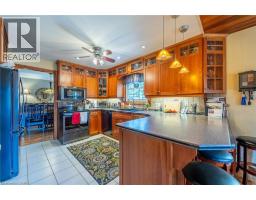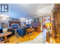 One owner 2 storey home ready for a new family. Large living room complete with a gas fireplace and loads of room to relax. The dining room is large enough for family gatherings. The kitchen and entryway have ceramic tile for ease of maintenance. The dinette is a bonus and can be used daily or as overflow for larger families. The sunroom is to die for with large wrap-around windows and dual skylights and a beamed ceiling. A 2 pc. bathroom completes this floor. The upstairs includes a 4 pc. bathroom and 3 bedrooms all with closets. The basement has another 3 pc. bathroom, a family room with a fireplace, a large laundry room with room for a work desk. A storage room completes the basement. All rooms on main and upper floors are hardwood. Step outside from the sunroom to a professionally landscaped rear yard. The 22' X 21' stone patio with a 12' X 12' gazebo complete with stone accents, sets the mood for outdoor entertaining. A stone bar area, complete with built-in fridge unit is always popular. An 8.5' X 8.5' Grand River shed for your storage needs is also included. As is a 10' X 8' shed for even more storage. At the rear is a 16' X 22' shop joined by a doorway to the 15' X 22' garage complete with auto garage door opener. The rear of the property is serviced by a fire lane. Sit on the covered front porch complete with a pergola and watch the world go by. A single car garage with double paved driveway also. All this and on the Pumpkinfest & Christmas parade route can be yours. Pre-home inspection by Garnet Snively Home Inspections is available. Stop and have a look. (id:61594)