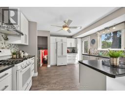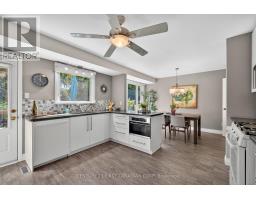 Backyard private paradise on quiet treed Byron court with huge lot. 4+1 bedroom + 2 pc ensuite + 1.5 more baths! Kitchen updated with gas range, modern cabinets, great counter space, glass and marble splash and open to dining with impressive views over the gardens and access onto your 2 tiered deck, perched over climbing roses, ornamental grasses, junipers and flowering almonds and so much more. Featuring further two ponds and fountains, private and fully fenced, vegetable gardens, a work area and adorable garden shed. Truly a gardeners delight and perfect for bird and butterfly enthusiasts Boasting: high efficiency forced air furnace and A/C, vinyl clad replacement windows, updated electric panel, bonus bedroom in lower level, hardwoods, 2 floor laundry potential, French doors, retractable electric awning, sprawling front covered porch, wood burning fireplace and excellent storage! Steps to Warbler Woods, Springbank Park, Schools, Cafes and Shops of Byron. Come book a private viewing!! (id:61594)