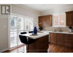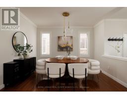 Stunning, turnkey home in sought-after West Oak Trails, backing directly onto Bloomfield Park with no rear neighbours-an exceptional setting offering privacy, tranquil views, and direct gate access to green space and trails. Located in a top-rated school district and minutes to Oakville Trafalgar Memorial Hospital, Glen Abbey Community Centre, The Abbey Plaza, Bronte GO Station and highways (QEW/407), this home blends nature with urban convenience. Exceptional curb appeal features beautiful, manicured gardens, an exposed aggregate double driveway leading to the double garage with inside entry, while soffit lighting enhances the upgraded brick exterior. The private backyard retreat boasts a spacious exposed-aggregate patio-ideal for entertaining or relaxing in a serene, park-like setting. Offering well-designed above-grade living space plus a finished basement, this home showcases hardwood floors, crown mouldings, California shutters, 9' ceilings, pot lights, and an upgraded staircase with metal pickets. The bright family room, with elegant crown mouldings, a gas fireplace, and a wall of windows, overlooks the park. A formal dining room is perfect for hosting, and the kitchen features maple cabinetry with valance lighting, quartz counters, stainless steel appliances, a centre island with a breakfast bar, and a walkout to the yard. Upstairs offers 3 bedrooms, plus a versatile den (optional 4th bedroom), and 2 renovated baths, including a luxurious primary retreat with a spa-inspired 5-piece ensuite, heated floor tiles, soaker tub, and glass shower with body jets. The finished basement adds a large rec room, 4th bedroom (no closet) with fireplace, and 3-piece bath-ideal for families or multi-generational living. Updates: roof (2015), furnace & HWT (2016), A/C (2021). (id:61594)