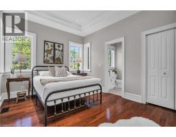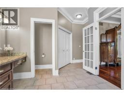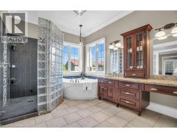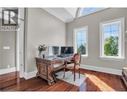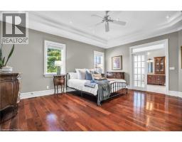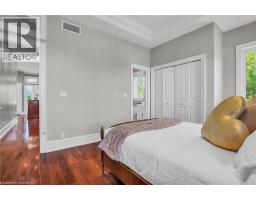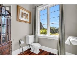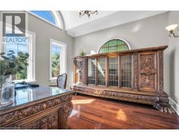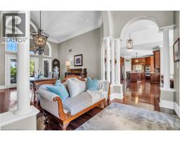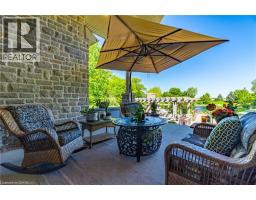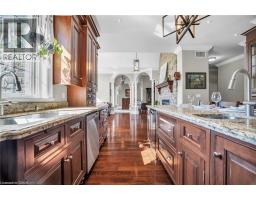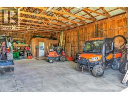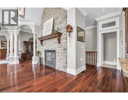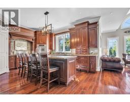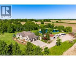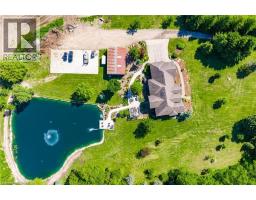 Welcome to your dream retreat! This custom stone bungalow (2003) sits on a sprawling 24-acre property just five minutes from Kitchener, with easy access to Hwy 8. Set 200 metres from the road, this one-of-a-kind home offers exceptional privacy and tranquility, surrounded by open fields and perennial gardens. With over 4,500 sq. ft. of finished living space, the home features barrel ceilings, tall baseboards, and crown moldings. In-floor heating provides timeless comfort, while engineered cherry hardwood and oversized rooms create a bright, inviting interior. The custom Chervin kitchen showcases cherry cabinetry, granite counters, a gas cook top, and a walk-in pantry. A stone gas fireplace anchors the main living area, which opens to a covered lanai—perfect for enjoying sunsets. There are three spacious main-floor bedrooms and six bathrooms, including a Jack and Jill—ideal for families. A main-floor office offers a dedicated work-from-home space or can serve as a fourth bedroom. The bright walkout basement features 9’ ceilings, engineered birch flooring (2025), a second fireplace, a fifth bedroom, and rough-ins for a kitchen and bath—ideal for a future in-law suite. Outdoors, enjoy a swimmable spring-fed pond with dock, a large concrete patio with pergola, stone fireplace, and meandering walkways. A 30x50 ft. barn with 60-amp service and a separate large concrete pad offer space for a workshop, storage, or homesteading. Approximately 14 acres of fields may be cultivated or rented. Additional features include: an extra-deep triple garage with basement access, high-speed internet, school bus pickup at the road, a new well (2024), gas generator (2020), low property taxes, south-facing views, and no nearby neighbours for true privacy. Don't forget about the potential to build a second home for multi generational living or income. A truly rare opportunity, custom built and never before sold. (id:61594)
