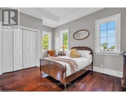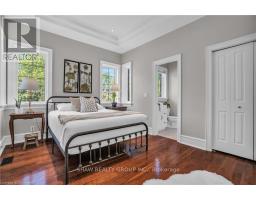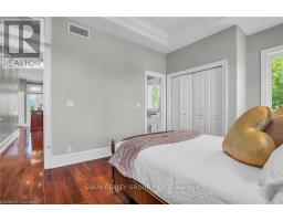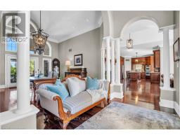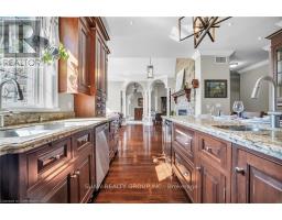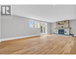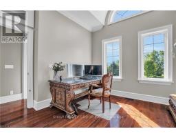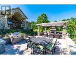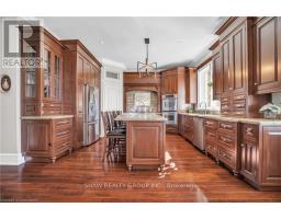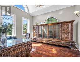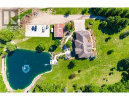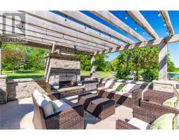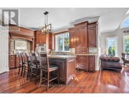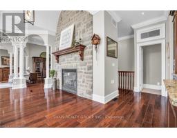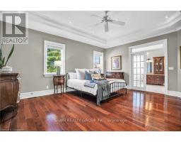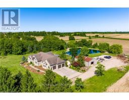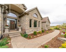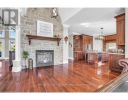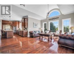 Welcome to your dream retreat! This custom stone bungalow (2003) sits on a sprawling 24-acre property just five minutes from Kitchener, with easy access to Hwy 8. Set 200 metres from the road, this one-of-a-kind home offers exceptional privacy and tranquility, surrounded by open fields and perennial gardens. With over 4,500 sq. ft. of finished living space, the home features barrel ceilings, tall baseboards, and crown moldings. In-floor heating provides timeless comfort, while engineered cherry hardwood and oversized rooms create a bright, inviting interior. The custom Chervin kitchen showcases cherry cabinetry, granite counters, a gas cook top, and a walk-in pantry. A stone gas fireplace anchors the main living area, which opens to a covered lanai-perfect for enjoying sunsets. There are three spacious main-floor bedrooms and six bathrooms, including a Jack and Jill-ideal for families. A main-floor office offers a dedicated work-from-home space or can serve as a fourth bedroom. The bright walkout basement features 9 ceilings, engineered birch flooring (2025), a second fireplace, a fifth bedroom, and rough-ins for a kitchen and bath-ideal for a future in-law suite. Outdoors, enjoy a swimmable spring-fed pond with dock, a large concrete patio with pergola, stone fireplace, and meandering walkways. A 30x50 ft. barn with 60-amp service and a separate large concrete pad offer space for a workshop, storage, or homesteading. Approximately 14 acres of fields may be cultivated or rented. Additional features include: an extra-deep triple garage with basement access, high-speed internet, school bus pickup at the road, a new well (2024), gas generator (2020), low property taxes, south-facing views, and no nearby neighbours for true privacy. Don't forget about the potential to build a second home for multi generational living or income. A truly rare opportunity, custom built and never before sold. (id:61594)