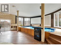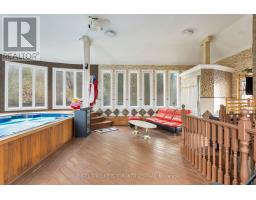 Welcome to this beautiful and meticulously maintained 4-bedroom, 4-bath family home, featuring large principal rooms and a grand two-storey foyer, perfectly situated on a quiet, family-friendly cul-de-sac in one of Woodbridge's most sought-after neighbourhoods. Set on a spacious pie-shaped lot backing onto serene green space, this property offers exceptional privacy while being just minutes from major highways, public transit, top-rated schools, parks, shopping, and all essential amenities. With approximately 2,600 sq ft above grade plus a fully finished walk-up basement, the home offers remarkable versatility, including a separate 1-bedroom apartment with its own private entrance-ideal for in-laws, a nanny suite, or extended family living.Inside, the bright open-concept layout is enhanced by pot lights, elegant crown mouldings, a cold room, a European-designed chef's kitchen with authentic marble countertops and backsplash, premium cabinetry, and an impressive oak circular staircase. The main floor also includes a convenient laundry room with direct access to the garage.The lower level features a full kitchen and a 3-piece bathroom, with direct access to an outstanding addition that showcases an endless pool and hot tub, creating a relaxing retreat at home. The exterior offers a truly entertainment-ready backyard with interlock landscaping front and back, a backyard bar, and a charming gazebo-perfect for gatherings and outdoor enjoyment. This exceptional property seamlessly blends luxury, functionality, and location, making it an absolute must-see. (id:61594)