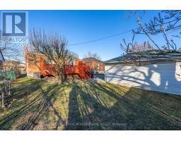 Welcome to this lovingly maintained 3+1 bedroom, 2 bathroom detached bungalow, proudly cared for by the same owners for over 60 years. A covered porch and updated walkway lead to the home, offering parking for 6+ cars plus a detached 1-car garage with automatic door opener. Major updates include shingles: House (May 2022), Garage (June 2020), eavestroughs, soffits, gutter guards, a newer furnace (October 2017), AC (August 2024), and rental HWT (2024). Inside, the main level features gleaming hardwood floors (excluding kitchen and bath) and a large front closet. Double thermopane front windows add comfort and quiet. The spacious living room includes crown moulding and a picture window overlooking the front yard and flows into the dining room, which connects to the bright eat-in kitchen. Three well-sized bedrooms-each with hardwood and ample closets-complete this level, with the third bedroom offering a walkout to the entertainer's deck and generous backyard. The updated 4-piece bath includes a walk-in tub/shower for improved accessibility. An electric chair lift is currently installed at the front entrance of the home. A convenient side entrance leads to both the main level and the finished basement, perfect for extended family or additional living space. The lower level features a large rec room, separate wet bar, eat-in kitchen, bedroom, bathroom, and abundant storage. Ideally located within walking distance to shopping, groceries, parks, places of worship, and transit, with quick access to major highways for easy commuting. (id:61594)