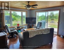 14407 County Road 2 is an irregularly shaped property comprising of five adjacent parcels which combine for 25.71-acres (1,119,953 s.f.) and have a combined 2,912 feet of road frontage on County Road 2, Hunt Road, and Barnes Road. The property is zoned for industrial ME-1 as well as RU. Many possibilities exist for rezoning! The main parcel, being 15.94-acres and located in the northeast section of the property, is developed with a house, an industrial style building, and a storage outbuilding. Great panoramic views of Lake Ontario. The 770 s.f. single-story bungalow features a single bedroom and three-piece bathroom. Originally constructed in 1954 it was extensively renovated in 2016. New windows 2022, New roof 2020, New Electrical 2024, New Heat Pump 2023. A new roof was installed in 2020, windows were replaced in 2022. The three-piece bathroom includes a walk-in shower, ceramic bowl sink set in a wooden countertop and frosted windows. The bedroom has a closet and glass patio door providing access to a rear wooden patio deck. The home is serviced by hydro, a septic tank, and a private well. Heating and cooling is provided by an electric heat pump and a supplemental propane fireplace. The 4,091 s.f. single storey industrial style building features two bays, each equipped with a roll-up drive-in door. The front section has a clear height of 24 ft. high, and the rear is 18 ft. Constructed on a poured concrete and concrete block foundation with slab on grade flooring, the exterior walls are primarily comprised of concrete block with sections of exposed structural steel and wood frames. The roof is a flat, asphalt membrane built-up roof with a gravel ballast. The building is serviced by a private well and septic tank system installed in 2014. It has 200-amp electrical service and is mainly unheated except for the bathroom which has an electric baseboard. There is an old wood fired furnace, but is not currently connected. (id:61594)