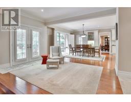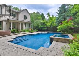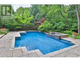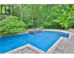 Welcome to this exquisite 5-bedroom executive estate, nestled on an impressive 58' x 219' pie-shaped, tree-lined lot with an impressive 100' across the back in one of South Mississaugas most coveted enclaves Mineola West. Offering over 4,500 square feet of elegantly curated above grade living space and partially finished 2161 sqft finished basement, this distinguished residence blends timeless sophistication with modern comfort, crafted for the most discerning buyer. From the moment you enter, you're greeted by a grand foyer that flows seamlessly into a sun-drenched formal living room with a gas fireplace. The formal dining room offers a W/O toa charming covered porch, perfect for elevated entertaining or al fresco dining. At the heart of the home lies the chef-inspired kitchen, equipped with premium built-in stainless steel appliances, a 5-burner gas cooktop, centre island, and inviting breakfast area overlooking the grounds. Designed for exceptional living and entertaining, the sunken family room transforms into a private cinema with a built-in screen media console, 4K projector, and ambient gas fireplace the ideal space for family movie nights or relaxed evenings in. Step outdoors to your private backyard oasis, beautifully landscaped and complete with a gunite saltwater pool, integrated hot tub, and lush greenery offering complete serenity and seclusion. The lavish primary suite overlooks the tranquil backyard and boasts his/hers W/I closets and a spa-inspired 6-PC ensuite featuring a deep soaker tub, oversized glass shower, and his/hers vanities. Upstairs, you'll find five generously proportioned bedrooms, including one with its own private 3-piece ensuite. A secondary upper-level lounge offers the perfect setting to unwind with family before bedtime, or as 5th bedroom. An exceptional opportunity to own a landmark residence in one of the GTAs most exclusive neighbourhoods, where refined taste meets everyday luxury. (id:61594)