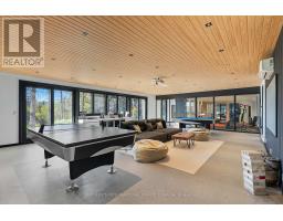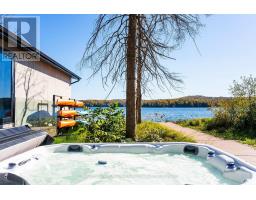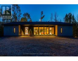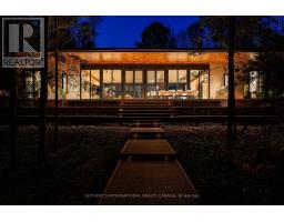 Discover your own private waterfront sanctuary in the desirable Burk's falls area on secluded Jack Lake with this Modern 8 bedroom, 6-bathroom lakefront estate offering on a 6+ acres level lot with 208ft of private shoreline in the Burks Falls area. The unique layout of this expansive single storey bungalow is specifically designed for both grand entertaining and a peaceful retreat. The mid-century modern inspired architecture features luxury finishes and minimalist elegance to compliment the beauty of this natural setting. Huge floor to ceiling window reveal jaw-dropping panoramic lake & forest views framed by towering trees. In addition, the massive open-concept living space, including triple-sided fireplace, chefs kitchen (double islands, dual dishwashers, hidden coffee station), offer multiple generous gathering zones plus 4 separate bedroom wings for privacy with 8 bedrooms and 6 bathrooms including 2 king primary suites with spa-inspired ensuites and private outdoor patios + 2 queen bedrooms each with their own private bath 2 oversized bunk bed-style rooms (queen + single) and 2 office/guest Murphy-bed rooms. Exceptional outdoor amenities features a one of a kind 1,570 ft covered deck with 14' canopy ceiling, an outdoor kitchen/BBQ & prep area, outdoor dining area & a sunken lake facing seating area with a large propane fire-table. Guests will marvelat the lakeside Recreation & wellness Building (1,950 ft): featuring an outdoor 8-person hot tub, a private pole dock w/ swim ladder and mooring cleats plus Indoor sauna, full gym, games (pool table, ping-pong) along with a convenient dry boathouse with marine railway boatramps. There are two separate firepits overall, a four bay garage with poured concrete a kids "jungle gym" playground area , an outdoor volley court, picnic spaces, kayaks & paddle boards included. Enjoy this spectacular turnkey, waterfront compound ready to host family, friends,retreats or luxury high-end rentals. (id:61594)