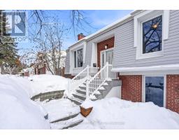 First time offered in over 30 years! This 4 bedroom, 2 full bathroom hi-ranch bungalow is nestled in a prime and mature community in Barrhaven close to schools, parks, and everyday amenities. Outside, a sprawling lot with plenty of curb appeal features classic red brick exterior, hardscaped front yard with interlock walkway, retaining walls, and LED exterior soffit lighting. Inside, enjoy the long list of renovations, a functional layout, and oversized windows pouring natural light into generous living and dining rooms. The updated kitchen checks all the boxes with granite countertops, tiled flooring and backsplash, an abundance of cabinetry and drawers, and includes the Stainless Steel Appliances. Three spacious bedrooms complete the main floor, along with a stunning updated full bath with pocket door access to the primary bedroom! The fully finished lower level is bright and warm with large windows, spacious rec room with gas fireplace, fourth bedroom or home office, 3pc bathroom, laundry area and direct access to the garage. The fully fenced backyard is perfect for entertaining, playtime for kids and pets alike, and offers a large deck for summer BBQ's. Being sold "as is, where is". 24 hours irrevocable. Some photos virtually staged. (id:61594)