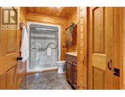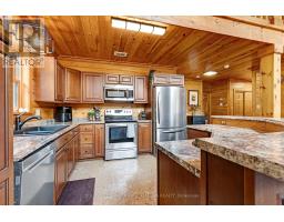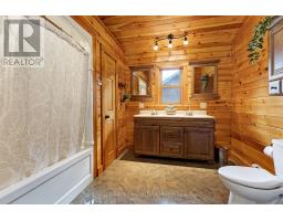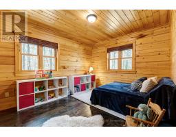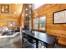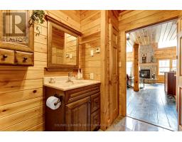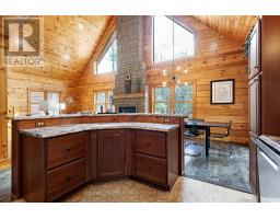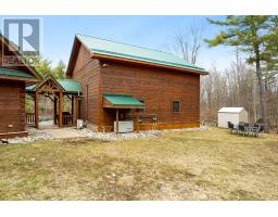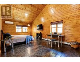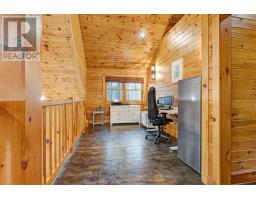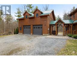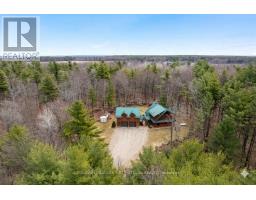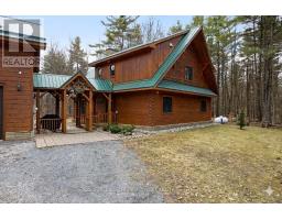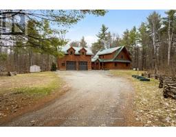 Tucked away on a quiet dead end road, this beautifully crafted log home offers the perfect blend of comfort, privacy, and year-round outdoor enjoyment on 8.7 acres of scenic woodland. Built in 2013, the home welcomes you with a stunning vaulted ceiling, a cozy fireplace, and expansive gable windows that frame the surrounding forest like living artwork, bringing in natural light and ever changing views of wildlife. The main level features two bedrooms, while the upper loft offers a versatile office or studio space, along with a spacious primary retreat complete with a full 4pc ensuite. A covered walkway connects the home to the oversized garage, which is much more than just parking! Above, you'll find a fully finished loft with a living room and bedroom, complete with its own heat and A/C (mini split and electric fireplace), making it ideal for guests, extended family, additional workspace, or potential for in-law suite. Both the home and garage are equipped with in-floor heating for efficient, year round comfort. Outside, explore your own private trail system winding through the trees, complete with charming wooden bridges. In the winter months, enjoy the rare luxury of skating through the forest right on your own property! Additional features include an EV charger outlet, exceptional privacy, and a setting that feels like a true escape, while still being within reach of everyday amenities - only 4 minutes to Elgin for groceries, schools, restaurants and shops. 7 minutes to Sand Lake, 20 mins to Westport, 41 mins to Kingston, 38 mins to Perth. (id:61594)