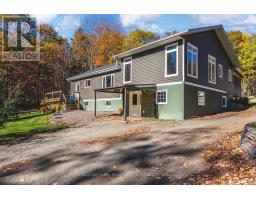 FULLY REMODELLED MUSKOKA RETREAT ON 1.76 PRIVATE FORESTED ACRES WITH SOARING CATHEDRAL CEILINGS, A CUSTOM MUSKOKA SUNROOM, & A 30 X 30 FT SHOP WITH DOUBLE BAY DOORS! Tucked away on 1.76 acres of private, forested land, this extraordinary Muskoka retreat combines natural beauty with stunning upgrades and year-round comfort. Located just down the road from McLean Bay and Sopher's Landing Marina, and only 10 minutes to downtown Gravenhurst, you are surrounded by lakes, trails, golf, and natural splendour, yet close to every convenience. Designed for outdoor enjoyment, the home boasts a wrap-around deck, a luxurious newer hot tub with a pergola, a charming 3-season bunky for guests or creative use, and a newly built 30x30 ft shop with double bay doors, ideal for car enthusiasts, hobbyists, or seasonal storage. An oversized driveway provides ample space for vehicles, RVs, boats, and other recreational toys. Inside, the striking open-concept design flows seamlessly through the kitchen, dining and living areas beneath soaring cathedral ceilings, while oversized windows frame serene forest views and flood the home with natural light. The inviting living room features a cozy stone-detailed fireplace, rustic exposed beams, and sliding barn doors leading to a primary suite with a walk-in closet and a spa-like 3-piece ensuite with a deep soaker tub. A custom Muskoka sunroom extends from the primary suite for quiet mornings or evening relaxation. Two additional bedrooms and a 4-piece bath complete the main level, while the walkout basement with a dry bar and electric fireplace provides versatile in-law suite potential or a stylish entertainment space. Completely remodelled with a thoughtfully designed addition, this home is finished with artisanal details, including a hand-milled white ash staircase. A true Muskoka sanctuary, this property offers the privacy, craftsmanship, and lifestyle you've been dreaming of - ready to be enjoyed in every season! (id:61594)