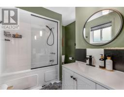 Beautiful 2-story detached home on quiet street with pie shaped yard, covered front veranda, newer front exterior doors, L-shaped front foyer new ceramic tiles. Open concept living room & dining room with front facing bay window, new hardwood flooring, fireplace with brick front hearth, crown molding & rear patio door, kitchen is updated with newer countertops, double recessed sink, additional 24-inch pantry & serving counter for extra storage and preparation space, hardwood staircase up and down, two front bedrooms with walls of closet space & hard floor flooring, main bathroom with custom vanity with sink, ceramic tile, backsplash & deep soaker tub, primary bedroom / additional vanity & cheater access, deep walk-in closet, finished basement room with consistent hardwood flooring, den with window & French door, laundry room with soaker sink, a walk-in closet with additional storage space. Fully fenced and surrounded by mature trees, Furnace & C/Air (2019) (id:61594)