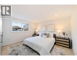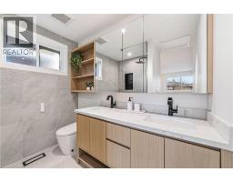 Not your typical bungalow - Rare modern transformation bungalow! Significant investment, hundreds of thousands spent into all updates & finishes, luxurious elegant open-concept living spaces. Premium custom upgrades throughout. New plumbing, electrical, drywall, roof, windows, doors, flooring, kitchens, baths, and much more. The flexible layout allows conversion into two potential independent suites, each with separate entrances, private laundry, and its own alarm security system - ideal for extended family or generating additional income. Designer kitchens showcase sleek cabinetry, high quality quartz counters, matching backsplash, and s/s appliances. Spa-inspired bathrooms feature smart heated toilets, frameless glass showers, and generous storage. Every detail stands out: solid-core doors, recessed linear LEDs, pot lighting, high-end millwork, spacious bedroom custom wardrobes with built-in drawer system, engineered hardwood, and bright above-grade lower-level windows. Even the garage has been transformed with new drywall, ceiling, tiled flooring, electric heating, hexagon LED lighting, a new door, and side access. Outside, enjoy beautiful curb appeal, a large backyard, lower walk-up access, new fence, extra-wide driveway, extra parking spaces, and exterior cameras. Steps to Eastgate Square Mall and minutes to Starsky Fine Foods, GO Station, QEW, and more. Must see in person. Watch the 3D Virtual Tour & book a visit! (id:61594)