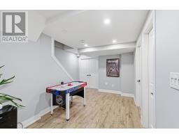 This stunning two storey brick home combines modern design, premium upgrades, and exceptional outdoor living on an oversized lot. The home features four bedrooms and three bathrooms with a functional, family friendly layout. The professionally landscaped, fully fenced backyard is a private retreat, exceptionally large and surrounded by mature trees for privacy. Enjoy a luxury patio for entertaining, expansive green space, a trampoline area, and a fully automated irrigation system keeping the yard lush all summer. Inside, a custom foyer with live edge wood accent leads to a bright open concept main floor with oak hardwood flooring and multi zone dimmable pot lights. The chef inspired kitchen features quartz countertops, stylish backsplash, stainless steel appliances, garburator, under cabinet lighting, soft close cabinetry, filtered drinking water tap, large centre island with breakfast bar, modern pendant lighting, and a butler style coffee bar. The dining and living areas include a built in sound system with in wall JBL speakers, dual subwoofers, and in ceiling speakers for music, movies, and entertaining. Sliding doors provide direct backyard access. The fully finished basement has sound proof ceilings, insulated underlay for warmth, oversized windows, storage, and open space for a recreation room, gym, or extra living area. Upstairs offers four bedrooms, including a primary retreat with shiplap accent wall, electric fireplace, spa inspired ensuite with soaker tub, walk in shower, and custom walk in closet. Pot lights, ceiling fans, second floor laundry, and motion activated closet lighting add convenience. Additional features include a 2022 roof with upgraded shingles, newer garage doors 2025, whole home HEPA air purification, 2022 water softener, extensive landscaping, and premium built in audio. Located on a quiet, family friendly street near schools, parks, trails, downtown Brooklin, and quick access to Highways 407 and 412. (id:61594)