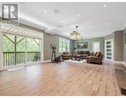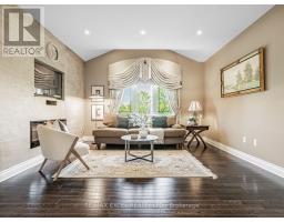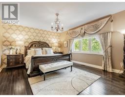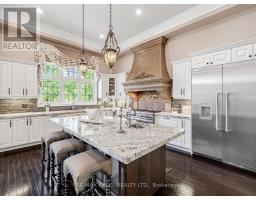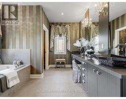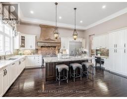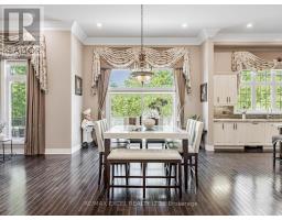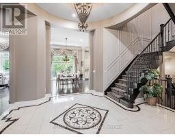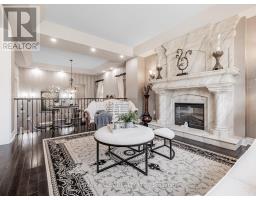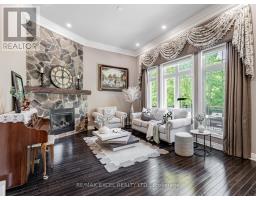 This exceptional 5+2 bedroom, 5 bath executive residence offers over 7,000 sq ft of total living space on a premium ravine lot with a finished walk-out basement. A dramatic 9 ft foyer welcomes you into a formal living room and a soaring 12 ft dining room, seamlessly connected by a butlers servery. The showpiece designer kitchen boasts a 48 gas range, 53 built-in fridge, oversized island, custom cabinetry, and granite countertops, with a sun-filled breakfast area walking out to a spacious deck overlooking the ravine. Flowing 12 ft ceilings continue through the kitchen, breakfast, and family room, highlighted by a stone fireplace and an expansive wall of windows framing serene views. A main floor office, laundry room, and direct 3-car garage access add everyday convenience. Upstairs, a circular hallway with open views below creates an architectural centerpiece, leading to 5 bedrooms with 9 ft ceilings. The primary suite is a true retreat with a sitting area, back-to-back fireplaces, a spa-inspired 6 pc ensuite, generous walk-in closets, and ravine views, while additional bedrooms feature semi-ensuite baths. The finished walk-out basement extends the living space with a theatre and recreation area featuring 9 ft ceilings, along with a childrens play area and a guest/nanny suite. Premium upgrades throughout include hardwood floors, hardwood staircase, pot lights, and designer lighting. With an expansive deck, tranquil ravine setting, and an ideal location close to parks, shopping, transit, and amenities, this home is a rare offering not to be missed. (id:61594)