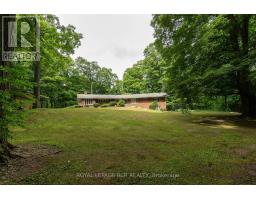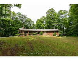 Hilltop bungalow on a prime 10 acres estate property - renovate or build new in complete privacy. Rare opportunity in one of King Township's most sought-after locations. 4877 sq ft total living space, 3+2 bedrooms, 4 bathrooms, 4 fireplaces. Oversized, detached 2-car garage. Driveway winds through the woods to a hilltop clearing surrounded by mature maples. Situated among county estates and horse farms. Home needs full renovation or is an excellent site for a new build. Privacy assured. (id:61594)