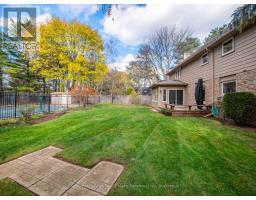 Superb 5 bedroom family home on a premium 85'x150' lot with gunite inground pool backing onto treed parkland just a short walk to Maple Grove School & OTHS. With over 3000SF above-grade this solid brick residence features hardwood floors throughout and spacious principle rooms. New eat-in kitchen (2013) with white cabinetry and quartz countertops. Large family room with brick gas fireplace was extended in 2015. Walk-out to deck, garden and pool. Main floor laundry and mudroom entrance. Main floor den. Primary suite features full sitting room, walk-in closet and large ensuite with separate shower and tub. 4 further bedrooms with large family bathroom featuring dual sinks. Clean, unspoiled basement is ready for finishing. Roof 2015, furnace 2010, AC 2013, 200 AMP service panel with ESA certificate. Fabulous circular driveway and 2 car garage. This is a spectacular property and offers the perfect layout for families with a large grass area and fenced pool zone across the back. Great light and private. Quiet street in prime neighbourhood. Close to the lake, downtown Oakville, shopping and more. Do not miss this opportunity! (id:61594)