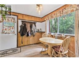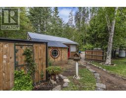 A quaint bungalow nestled on just over 2 forested acres awaits! This little gem has beautiful gardens, a fenced yard within the mature treed lot, wrap around deck and garden / storage sheds along with a detached garage, which features a workshop area too. The kitchen has been nicely refreshed and features a cozy dining area, all overlooking the forest. Primary bedroom has a walkout door to a future front patio - perfect for morning coffee! An unfinished basement with walkout offers opportunity for improvement and additional living space. This is a great starter home, ideal for those downsizing or for the nature enthusiast looking for a weekend retreat in Muskoka. The homeowner has created beautiful trails through the forest with a charming bridge across a tranquil little creek and thoroughly enjoys walking and dirt biking here. Come have a look at this home, see the lovingly maintained gardens and enjoy a stroll through the woods while you're considering this one! (id:61594)