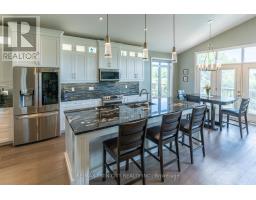 Welcome to your dream home located on the prestigious Robin Ridge Drive, Belmont's most desirable street! This exceptional Kerr-built ranch bungalow offers nearly 3,700 sq ft of beautifully designed living space, backing onto breathtaking views with *no rear neighbours*. Just minutes from London and Highway 401, this location perfectly balances small-town charm with city convenience. Step inside to discover a bright, open-concept layout that's ideal for both everyday living and entertaining all your friends and family. The gourmet kitchen is straight out of a dream complete with granite countertops, custom cabinetry, and high-end finishes. It opens to a spacious and sun-filled living room with a cozy gas fireplace and a walkout to a private deck overlooking natural surroundings, where you can soak in the stunning vistas while grilling dinner using the convenient gas BBQ hookup. The main level boasts 3 generous bedrooms, including a luxurious ensuite featuring heated floors, plus a large 4-piece washroom. The lower walkout level is equally impressive, offering 2 more large bedrooms (including another luxury ensuite with heated floors), a huge family room, and tons of storage space. Step outside to your professionally landscaped private backyard patio oasis, perfect for relaxing or hosting gatherings while soaking in all that nature has to offer. Upgraded throughout, this home is ideal for multi-generational living, and also includes elegant transom windows, upgraded doors, custom blinds, and ambient vanity and valance lighting for that extra touch of luxury. With a massive 3-car garage and top-to-bottom attention to detail, this one-of-a-kind home is sure to impress. Don't miss your chance book your private showing today! (id:61594)