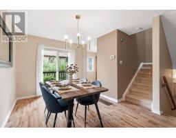 Tucked away at the end of a quiet, tree-lined cul-de-sac, this 3-bedroom, 3-bathroom condo townhome with low condo fees, offers that rare city feeling: privacy, calm, and space to breathe. Inside, the layout is simple and smart. Updated flooring runs through the main level and the living room, anchored by a wood-burning fireplace with updated surround, making it feel both open and cozy. The kitchen and spacious dining room connect easily to the outdoor balcony, with room to host, unwind, or just enjoy your morning coffee in peace. Upstairs, skylights bring in soft natural light, and all three bedrooms feel tucked away and serene. The second level includes a full bath, linen storage, and a spacious primary bedroom set apart from the other 3 bedrooms with its own 4-piece ensuite. Downstairs, the walkout lower level adds flexibility for a work-from-home space or an additional living room, plus a powder room, laundry room, storage space, garage entry, and direct access to your private treed patio. With three distinct outdoor sitting areas: a deck off the living room, a balcony off the dining room, and a fenced-in patio below, there's space to catch the sun, find the shade, or escape with a good book. Set in the Sawmill Creek pocket of Blossom Park, you're just steps to the Sawmill Creek Trail and Duck Pond, and minutes from groceries, South Keys, neighbourhood parks, and transit on Bank Street. Whether it's your first place or a fresh start, this is a home that makes everyday living feel just a little more peaceful, right in the heart of it all. (id:61594)