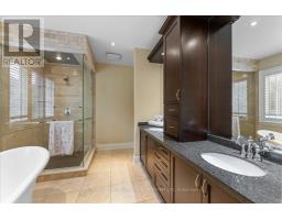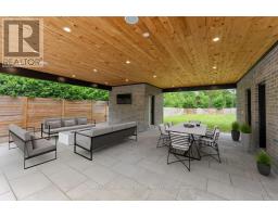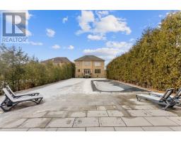Welcome to this spectacular custom executive home, nestled on a RARE 374FT DEEP PREMIUM LOT offering ultimate privacy and serenity. Surrounded by trees and fully fenced, the professionally landscaped backyard is a true oasis featuring over $200K in recent upgrades. Enjoy resort style living with an INGROUND SALTWATER POOL with automatic cover, expansive patio, and stunning covered cabana with pot lights and gas lines ready for your firepit and BBQ. Whether you're entertaining guests or enjoying a quiet evening outdoors, the large grassy area and ambient lighting create the perfect setting. Inside, enjoy luxury finishes throughout, including hardwood floors, smooth ceilings with elegant crown moulding, pot lights, and generously sized rooms. The gourmet eat-in kitchen boasts stainless steel appliances, a center island with breakfast bar, a butlers pantry with prep sink, walk-in closet, and ample storage. The great room features soaring ceilings, and the main floor includes a private office. Upstairs, the primary suite offers double-door entry, vaulted ceilings, a 6-piece spa-like ensuite, and his/her walk-in closets. Oversized secondary bedrooms come with ensuites or semi-ensuites. Additional highlights include a balcony library/piano room and an unspoiled basement ready for your personal touch! With a spacious double car garage and third tandem spot, this home truly has it all - just minutes to the 401, the GO Station, shopping, restaurants, schools, and parks. (id:61594)