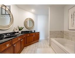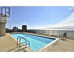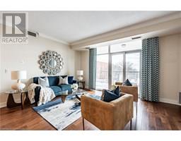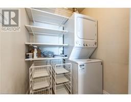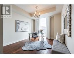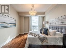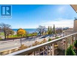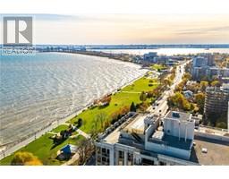 Wake up to lake views every day! Welcome to Bunton's Wharf, an elegant lakeside retreat in the heart of downtown Burlington. This stunning condo offers breathtaking lake views from a spacious balcony and features two generously sized bedrooms and two beautifully appointed bathrooms. Designed for both style and comfort, it boasts 9 ft ceilings, LED pot lights, and rich maple/hand-scraped engineered flooring. The gourmet kitchen is a culinary masterpiece, equipped with high-end Fisher & Paykel appliances, a sleek two-drawer dishwasher, granite countertops with a breakfast bar, and an oversized walk-in pantry with the in-suite washer and dryer. Both bedrooms provide walk-in closets and bay windows, perfectly framing the serene lake vistas. The open dining and living areas exude sophistication, enhanced by crown moulding and an exquisite Swarovski crystal chandelier ideal for entertaining or unwinding. Exclusive building amenities include two fitness centres with a golf simulator, a rooftop heated pool with a terrace and BBQ area, and a resident laundry facility. This unit includes underground parking and a same-floor locker. Two pets, up to 20 lbs each, are welcome to share your luxurious lifestyle. Located just steps from Spencer Smith Park, waterfront trails, fine dining, boutique shopping, and Joseph Brant Hospital, this condo offers seamless access to the QEW, 407, and GO Transit. With its unrivalled elegance and prime location, this home offers the perfect blend of luxury and convenience. (id:61594)