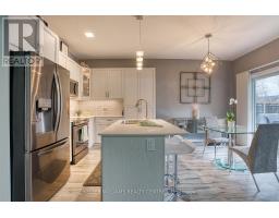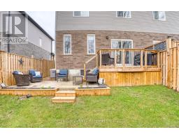Rural charm, modern convenience. Sharp 3 bed, 3 bath, semi-detached home in quaint Tavistock on quiet cul-de-sac allows you to enjoy the best of country living in a small enclave of newer modern homes only 5 years old. This home has upgraded features throughout including an enhanced custom kitchen with quartz island breakfast bar, touchless faucet, upgraded storage and counterspace, illuminated glass-door corner cabinet, all in a wonderful open concept main floor that embraces family life! Walk-out from bright patio doors with custom blinds, to private, fenced back yard fully landscaped and ready for summer with deck, poured patio, and lawn accented with built-in flower boxes. Double door front entry with glass inserts, keyless entry, door cam, direct access to generous 1.5 car garage with garage door opener w/wifi option. The second floor is well appointed with a primary bedroom featuring a walk-in closet, electric fireplace, and 4 piece ensuite - note the his & hers sinks, oversized walk-in shower, heated towel rack and the top-down/bottom-up custom blinds. Bright second and third bedrooms, 4 piece bathroom, linen closet, and a separate laundry space round out the second floor space. This home has upgraded faucets, lighting fixtures, main floor 9 foot ceilings and convenient touches throughout. Basement is bright with high ceilings and deep windows to let natural light in. (id:61594)