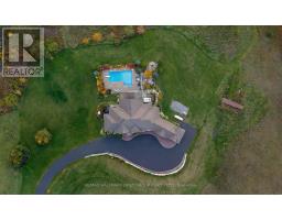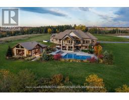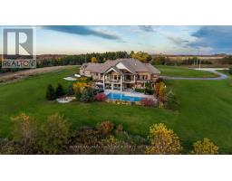 Welcome to 14806 York Durham Line-an extraordinary custom-built stone & brick estate set on a breathtaking 11.3-acre private retreat in Whitchurch-Stouffville. Offering nearly 8,000 sq ft of refined living space, this home showcases exceptional craftsmanship, upscale finishes, and a layout designed for both everyday comfort and grand entertaining. The open-concept great room impresses with soaring vaulted ceilings and a striking 4-ft linear fireplace, while the chef-inspired kitchen features maple cabinetry, stone countertops, a large centre island, premium Thermador professional appliances, and a well-appointed butler's pantry with abundant storage, an additional fridge, and prep sink-perfect for seamless entertaining. The luxurious primary suite is a true sanctuary, complete with coffered ceilings, a spa-like 5-piece ensuite, custom walk-in closet, and a private balcony overlooking the serene grounds. Each additional bedroom is generously sized with its own private ensuite and large closet, offering comfort and privacy for family and guests alike. A versatile loft provides extended living space with potential for multi-generational use, while the walk-out lower level is fully equipped with a theatre room, gym, and bar-perfect for entertaining.Step outside to your own resort-style oasis featuring a saltwater pool, sauna, hot tub, and expansive outdoor living spaces surrounded by nature and complete privacy. Located minutes to Musselman's Lake, Stouffville, Ballantrae, Aurora, Markham, Hwy 404, York Regional Forest, and approximately 40 minutes to Toronto, this property offers the perfect balance of luxury living and convenient access. A professional feasibility report has been completed and will be provided, outlining that the property supports continued use as a luxury estate with potential for additional accessory structures (such as a cabana or pool house), while preserving its natural surroundings and long-term privacy. (id:61594)