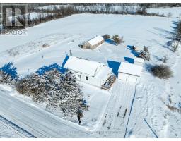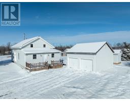 Impeccable condition for its 200-year age! This charming rural home near Odessa has undergone numerous updates while preserving much of its original woodwork and window framing. It features a spacious eat-in kitchen with ample counter and cupboard space, a separate dining room, and a generous living room with hardwood floors. The main level also includes a laundry area and a four-piece bathroom. Upstairs, you'll find a massive primary bedroom, two additional well-sized bedrooms, and a large hallway with ample closet space. The dry, insulated basement offers plenty of storage. Updates include wood & propane furnaces, air cleaner, water treatment system, thermal windows finished and much more. Outside, the property includes a detached double garage with an upper level, two garden sheds, and a sizable workshop-perfect for hobbies or extra storage. All of this sits on approximately 3 acres, with convenient access to nearby city centers. (id:61594)