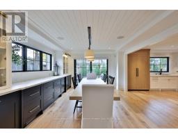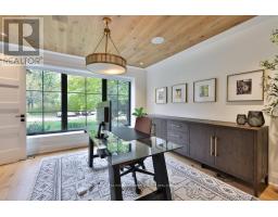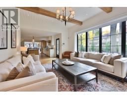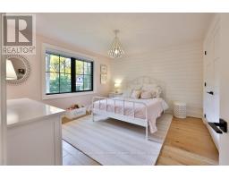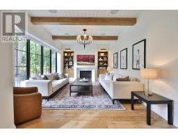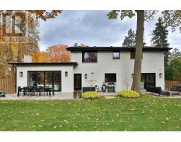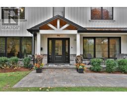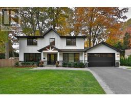Modern Farmhouse Elegance in Lorne Park! Set on an expansive pie-shaped lot, this home has been completely renovated throughout, offering over 4,100 sq ft of refined living space. Features include 9" white-oak floors, shiplap detailing, and a stunning open-concept layout with a quartz kitchen and oversized centre island overlooking the family room with gas fireplace and beamed ceiling. Upstairs offers a serene primary suite with spa-inspired ensuite plus three additional bedrooms with designer finishes. The finished lower level adds a chevron-pattern laundry, built-in workspace, and bath. The oversized garage showcases an epoxy floor, slat wall system, and built-in cabinetry. Covered cedar porch and exterior cameras complete this exceptional home steps to top Lorne Park schools and waterfront trails. (id:61594)