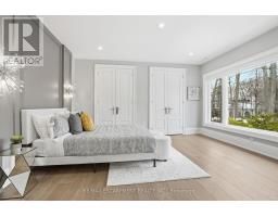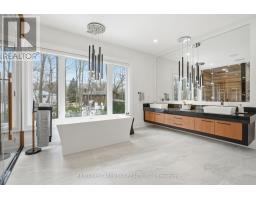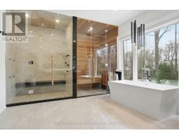 A striking expression of modern design and refined living, this custom-built residence is ideally located in the prestigious Whiteoaks of Jalna enclave of Lorne Park. Showcasing exceptional craftsmanship and curated finishes throughout, the home blends bold architectural presence with thoughtfully designed, highly functional living spaces. A dramatic double-height foyer with approximately 20 ft ceilings creates a grand sense of arrival, leading into open-concept principal rooms defined by wide plank hardwood flooring, custom millwork, and a sleek linear fireplace. The chef-inspired kitchen serves as the heart of the home, featuring full slab porcelain surfaces, integrated Thermador appliances, a pot filler, and an oversized island designed for both everyday living and entertaining. The upper level offers spacious, well-appointed bedrooms, including a luxurious primary retreat with a custom walk-in closet and spa-inspired ensuite complete with a freestanding tub, rainfall shower with body jets, and a private steam sauna. The fully finished lower level is designed for elevated entertaining, featuring a custom wet bar, wine display, media lounge, and a private home theatre with tiered seating for eight. Outdoors, professionally landscaped grounds offer a private, tree-lined setting with a tiered deck, glass railings, hot tub area, and seamless indoor-outdoor flow, ideal for both relaxation and hosting. A rare opportunity to own a thoughtfully designed modern home in one of Mississauga's most sought-after neighbourhoods, just minutes to top schools, parks, and the lake. Luxury Certified. (id:61594)