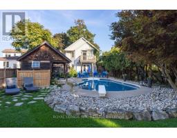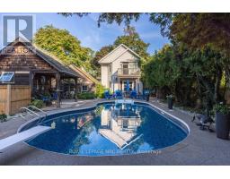 Only offered twice in 40 years, this is a rare and romantic slice of Port Dalhousie, tucked behind a white picket fence and framed by majestic century trees. This exceptional waterfront property stretches to the shores of Martindale Pond, offering serenity, privacy, and natural beauty rarely found within city limits. The backyard is a true retreat, featuring an inground pool, charming cabana, lush gardens, and a private dock at the water's edge. Enjoy morning coffee, sunset cocktails, or front-row views of world-class rowing from your own shoreline. Inside, the home blends historic charm with a thoughtfully designed 2-storey, 1,680 sq ft addition, creating a warm and welcoming space ideal for gathering. The original 950 sq ft home showcases custom millwork, a beamed dining room ceiling, and cozy character, while the 2010 addition offers a stunning kitchen, pond-view great room, and a spectacular primary suite with balcony, vaulted ceiling, gas fireplace, and breathtaking outlook. Two staircases enhance flow and flexibility. Skylit bedrooms, 3 gas fireplaces, and a layout that allows for a separate guest retreat or private children's wing add versatility. A poured concrete basement with 9' ceilings offers outstanding potential for additional finished living space, while a Generac generator, updated mechanicals, and meticulous care throughout provide comfort and peace of mind. Port Dalhousie is a prestigious lakeside enclave known for sandy beaches, private marinas, waterfront trails, acclaimed dining, and the world-famous Henley Island rowing course. Minutes to wineries, golf, and highway access, this is one of Niagara's most exclusive lifestyle communities. (id:61594)