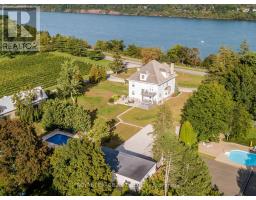 Beautifully redone residence overlooking the Niagara River situated on manicured 1.25 acre parcel, complete with 4 car detached garage, in-ground swimming pool. Stunning natural wood floors, trim, pocket doors and staircases painstakingly restored by the current owner. The home currently set up with 3 rooms with private baths on the main floor, living room, dining room and kitchen. 2nd floor 2 additional rooms for guests/family with private baths, owners area with custom kitchen, great room with gas fireplace, large bedroom and bath plus walkout to large deck with view of the river. 3rd floor office, laundry room and another full suite with combo living/sleeping area, spiral staircase to the 4th floor. Over 6,000 sq. ft. finished living space. The exterior finishing is Hardy-board, complete with aluminum soffits, facia and commercial grade gutters. Cedar shake roof. Windows replaced. Electrical done. 2 gas forced air furnaces, 2 air-conditioning units and 2 gas hot water tanks. Basement with over sized windows, potential for finishing. 3 decks, sit out front porch plus large stone patio. Next to the garage a very private in-ground pool and lounge area. Perfect B and B. Also a stunning Family Retreat for a large family. Endless possibilities in a beautiful Niagara-on-the-Lake setting. A few minutes past historic Queenston as well as a short drive to "Old Town", Shaw Theatre, numerous wineries, distilleries, easy access to US border and highways. (id:61594)