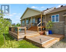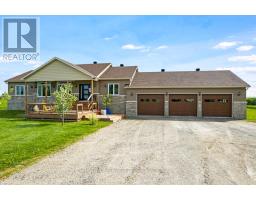 Enjoy sunrises and sunsets from this immaculate new 2022 bungalow on 1.4 acres in tranquil upscale country neighbourhood, just 8 mins from historic Perth for shopping & fine dining. Attractive well-built family home with exterior stone and siding that blends into the countryside. Fruit trees border driveway leading to landscaped front yard with perennial garden. Large tiered front deck welcomes you home and is perfect for lounging during summer days. Front door glass panels let light flow thru roomy foyer with closet. Open living-dining and kitchen's high vaulted ceiling creates great sense of space. Extra-large transom windows for lots of natural light. Flooring is durable hickory hardwood. Dining area w/contemporary iron-styled chandelier and garden doors to deck with gazebo & BBQ hookup. Modern kitchen has island-breakfast bar, pantry and window overlooking big back yard. Primary suite also features large window, walk-in closet and 4-pc ensuite with glass shower & deep soaker tub with porcelain surround that complements porcelain floor. Two more good-sized bedrooms and 4 pc bathroom with laundry station. Expansive lower level family room and fourth bedroom with huge closet. The lower level has In-law suite potential, with another laundry centre with washer and dryer plus, there's a 4-pc bathroom with deep soaker surrounded by porcelain tile. Massive wide open rear yard with limitless possibilities for gardening, adding a pool and a play structure. Contractors and hobbyists will appreciate the attached finished 30x40 garage-workshop that's drywalled and has hydro, hot water, extra high ceiling, pot lights, over head propane heater & wrap-around workbench. Located on paved township road with garbage pickup & mail delivery. Elementary school a minute walk away. Bell hi-speed. Cell service. Mississippi Lake public boat launch 5 mins down the road. And, 15 mins to larger center of Carleton Place. Direct 30 min commute to Kanata. (id:61594)