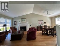 Welcome to this immaculately maintained and updated bungalow situated on a beautiful, private and peaceful cul-de-sac in the town of Port Dover. The living room is highlighted by a gas fireplace, hardwood flooring and a cathedral ceiling, creating an inviting atmosphere. The cathedral ceiling extends over the dining room, featuring a sizable window overlooking perennial gardens and mature trees. The kitchen includes a spacious island, spice cabinet, pantry and a second eating area with patio doors to the private patio and landscaped back yard. Retreat to the generous primary bedroom, featuring hardwood flooring, a walk-in closet and an ensuite bathroom with walk in shower. Two additional well-appointed bedrooms with hardwood flooring and an updated second full bathroom, with quartz countertops, ensure ample space for family and guests. The convenience of a main floor laundry setup, along with a lower level family room and stylish bathroom—complete with another quartz countertop—makes this property exceptional. Updates in the last five years enhance the comfort and efficiency of this home, including windows, furnace, air conditioning, insulated garage door and R60 attic insulation, providing peace of mind and energy savings. Additional updates include new flooring, central vacuum, home surge protection, eavestroughs and downspouts, fresh paint, door hardware, upgraded baseboards, sills and trim, and two gas BBQ connections for the ultimate outdoor convenience. This carpet-free home combines modern amenities with classic charm, creating a space that is both functional and inviting. Don't miss the opportunity to make this Port Dover bungalow your own. Schedule your private showing today and discover the lifestyle that awaits you in this beautiful home! (id:61594)