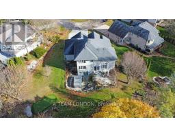 Discover upscale living in this remarkable 2+1 bedroom, 4 bathroom open-concept home, nestled in a tranquil park-like setting along the Thames River with kilometers of scenic trails. The expansive, fully landscaped backyard is an outdoor oasis, featuring a stunning patio with multiple seating areas, a swim spa hydro pool (2015), a sizable firepit for starry nights, and your own chip and putt green (2021).Designed for comfort and entertainment, the spacious eat-in kitchen includes a large island that seats six, with a sunken family room featuring a vaulted ceiling, and a generous living room. Upstairs, the oversized primary suite serves as a private retreat, with an additional bedroom offering open living/working space and a luxurious 5-piece bathroom. The lower level showcases an impressive walkout, a fully insulated wine cellar, and a great room currently used as an art studio with a full kitchen. A third bedroom with an ensuite provides ideal accommodations for guests. With a triple-wide driveway and a 2.5-car garage for ample parking, recent upgrades include garden lighting, a natural gas BBQ, a new stove (2023), and an owned gas water heater (from July 2022). The furnace and air conditioning were updated in 2012, ensuring year-round comfort. This stunning property is a must-see for discerning buyers seeking a blend of luxury and natural beauty. Schedule a showing today to explore this perfect setting for your next chapter. Some photos are virtually staged. ** This is a linked property.** (id:61594)