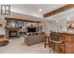 SPACIOUS FAMILY HOME WITH STANDOUT CURB APPEAL ON A PREMIUM LOT! 15 Charing Crescent is a Coscan-built, all-brick 2-storey set on a quiet crescent in Aurora Highlands, surrounded by established homes and a street that feels easy to come home to. An interlock walkway, stone detailing, black window trim and doors, and a covered front porch are complemented by an attached double-car garage and driveway parking for 4. Nearly 2,400 square feet above grade showcases soaring ceilings and oversized arched windows filling the great room and dining room with natural light. The well-equipped kitchen features white cabinetry, stainless steel appliances, an island, and a striking three-sided gas fireplace that connects the kitchen and family room and draws people together. Four upper-level bedrooms include a primary retreat with a walk-in closet and a spa-inspired 5-piece ensuite complete with a glass-walled shower, freestanding soaker tub, and dual vanity. The finished basement adds flexibility, featuring a recreation room with a bar, shiplap accents, a wood-burning fireplace, a 5th bedroom, a 4-piece bathroom, and plenty of storage. Outdoors, the fully fenced backyard is framed by mature trees and shrubs, with a deck featuring built-in benches and an awning that invites relaxed evenings and casual gatherings. Schools, parks, playgrounds, and public transit are within walking distance, while St. Andrew's College, Highway 400, and Highway 404 are under 15 minutes away. This is a #HomeToStay that quietly fits into your life and feels right long after the door closes behind you. (id:61594)