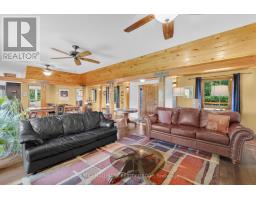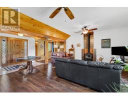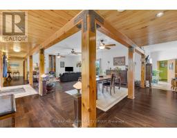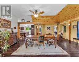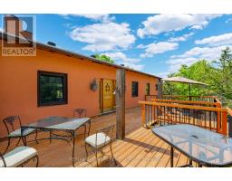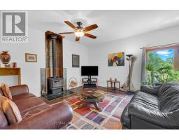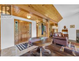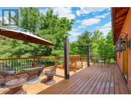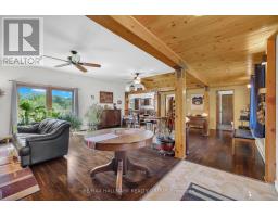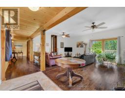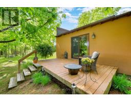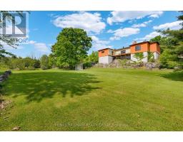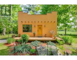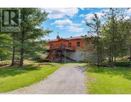 Perched on a natural rock formation and set back from the road, this southwestern-inspired masterpiece offers a rare blend of luxury, style, and versatility on 2.74 acres of beautifully landscaped land. From the moment you ascend to the custom front door - imported from California to suit the homes distinctive aesthetic - you'll be captivated by the charm and intentional design of this one-of-a-kind residence. Inside, an open-concept living and dining space is anchored by a cozy wood-burning fireplace and custom posts that add artistic flair. Just beyond, a sprawling rear deck offers sweeping views of the lush natural surroundings, making it the perfect backdrop for morning coffees or evening wine. The oversized kitchen is truly the heart of the home and is designed for function and fun, with generous counter space, cabinetry, and brand-new appliances. Just off the kitchen is a custom bar area complete with a unique floor hatch to the basement, adding an extra layer of personality. This wing also includes a guest bedroom and a 2-piece bath with laundry. The primary suite is tucked away for privacy and features a walk-in closet and a spa-like ensuite with a deep soaker tub and walk-in shower - an everyday luxury. Step outside and the lifestyle continues. A 420 sq ft guest bunkie offers endless income potential as a work-from-home office, Airbnb rental, or private guest retreat. A separate shed echoes the southwestern style, and the entire property is framed by mature trees, perennial gardens, and manicured green space.Built with durable ICF construction, this home not only looks incredible but is made to last. And when it comes to location, youre just a 3-minute walk to St. Lawrence Park, with access to a boat launch, the 37 km paved bike path, and Browns Bay Beach just 5km down the road. This isn't just a home - it's a whole lifestyle. A place where thoughtful design, potential income, and luxury living collide - a home that truly has it all. (id:61594)