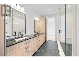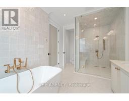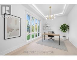 This custom-built masterpiece offers over 5,100 sq ft of refined living space with 4+1 bedrooms, 6 bathrooms, and 10' ceilings on the main level (with 9' ceilings on both the second and lower levels). Originally built by the builder for their own family's use, this brand-new home has never been lived in, reflecting uncompromising craftsmanship, superior quality, and thoughtful design in every detail. The chef-inspired kitchen showcases a 48" Thermador gas range, built-in appliances, coffee bar, prep kitchen, dual dishwashers, and quartz countertops framed by custom cabinetry. Enjoy floor-to-ceiling south-facing windows with motorized blinds, a 6-ft linear fireplace, and 130 pot lights illuminating the home's sophisticated flow. Wide-plank hardwood, statement lighting, and detailed mouldings add warmth and character throughout. The primary retreat offers his & hers walk-ins and a spa-like ensuite with heated floors, soaker tub, glass shower, and private water closet. Additional bedrooms include ensuite or semi-ensuite access with timeless finishes. The bright lower level, with 9-ft ceilings, features a spacious recreation area, guest suite, and modern powder room, ideal for entertaining or extended family. Additional highlights include a metal roof, smart wiring throughout, 200-amp electrical service, hot & cold-water outlets in garage, rough-in for EV charger, and a fully landscaped, fenced yard. Steps from ravines, trails, top-rated schools, and all that Etobicoke offers, this home defines bespoke luxury living. (id:61594)