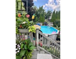 This beautifully designed multi-level home offers 3 spacious bedrooms and 3 bathrooms, blending comfort and functionality throughout. The inviting living room features a stunning cathedral ceiling, creating an open and airy atmosphere that flows seamlessly into the kitchen which overlooks the living space-perfect for everyday living and entertaining. The dining area includes a walkout to the backyard, extending your living space outdoors. A finished rec room provides additional space for family gatherings, a home office or entertainment. Convenient main floor laundry right off inside entry from garage. Outside, enjoy a good sized front porch ideal for relaxing, along with a beautifully landscaped backyard with an above ground pool, stamped concrete patio and low maintenance composite deck-perfect for summer enjoyment The home also features a 1.5 car garage and a stamped concrete driveway with parking for 4 vehicles offering ample parking in the driveway. This property is located in a desirable area in Hespeler, close to schools, Community Centre/skating rinks, and easy access to 401 (id:61594)