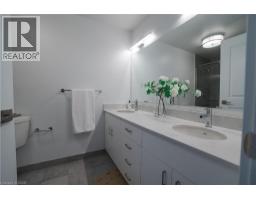 Located in the heart of historic downtown Galt, this beautiful condo is part of the vibrant Gaslight District—a new center for residential, commercial, retail, dining, art, and culture. Here, life, work, and leisure come together to create an unparalleled living experience. This impressive unit has nine-foot painted ceilings, wide-plank light flooring, and premium finishes throughout. The spacious kitchen features modern cabinetry with designer hardware, quartz countertops, a tile backsplash, an oversized island with an under-mount sink and gooseneck faucet, and stainless steel appliances. The open-concept design flows seamlessly from the kitchen into a generous living and dining area, ideal for entertaining. Floor-to-ceiling windows and access to a large balcony let natural light flood the space. The primary suite offers his & her closets, glass doors leading to the balcony, and a luxurious four-piece ensuite with dual sinks and a walk-in shower. A second bedroom with floor-to-ceiling windows, a four-piece bath with a tub and shower combo, and in-suite laundry complete this premium unit. This condo also includes two parking spaces for your convenience. Residents enjoy access to an array of amenities, including a welcoming lobby with seating, secure video-monitored entry, a fitness area with a spacious yoga and Pilates studio, a games room with billiards, ping-pong, and a large TV, a catering kitchen, a private dining room, and a cozy library. The lounge opens onto a spacious outdoor terrace overlooking Gaslight Square, featuring multiple seating areas, pergolas, fire pits, and a BBQ area for outdoor relaxation. (id:61594)