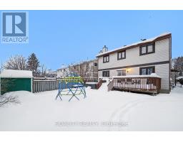 Bright and spacious, this home is located on a quiet street in a great Barrhaven neighbourhood, close to parks, schools, shopping, and transit, with no rear neighbours.The main floor offers a functional layout with a formal dining room, a front family room ideal for a home office or playroom, and a separate formal sitting area. The kitchen includes an eat-in area with views over the fully fenced backyard and opens to a spacious family room with a recently updated wood-burning fireplace. A mudroom with laundry and garage access, along with a powder room, complete the main level. (Brand new washer and dryer. Kitchen appliances replaced in 2017) Upstairs features 3 spacious bedrooms (the model was originally designed to accommodate a 4th). The primary bedroom offers space for a desk or sitting area, a walk-through closet with custom built-ins, and an updated ensuite with a glass shower, soaker tub, and dual sinks. Upstairs windows have been replaced, with remaining windows updated in 2008.The finished basement includes a large rec room, 4th bedroom, ample storage, and a rough-in for a future bathroom. The backyard is fully fenced with no rear neighbours and includes a hot tub, hedges, and an apple tree on the other side of the fence. (please note the chain-link fence in the summer photo has been updated to a privacy fence that you see in the winter photo. ) Additional features include a double garage, four-car driveway, roof replaced in 2010, furnace and A/C installed in 2012. (id:61594)