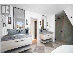 A true statement of luxury, 15 Holland Park offers approximately 2,600 sq ft above grade of meticulously crafted living space, where no expense has been spared. This professionally designed 4+1 bedroom, 5-bath residence showcases timeless elegance with a striking limestone and brick façade and refined finishes throughout. The home is flooded with natural light and features thoughtfully curated details, with premium plumbing and tile selections supplied by Canaroma. The primary retreat is a showstopper, occupying its own private level complete with a rooftop terrace overlooking the city skyline and iconic CN Tower views, dual his-and-her walk-in closets, and a spa-inspired ensuite designed for ultimate relaxation. A fully finished basement with separate entrance and separate laundry adds incredible flexibility for extended family or guests. From the elevated design to the seamless indoor-outdoor living, this exceptional home delivers sophisticated city living at its finest. (id:61594)