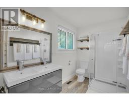 Affordability with style. Check out this 3 bedroom bungalow semi-detached home in north/east London close to access to the 400 series highways, Clarke Road or Veteran's Memorial Hwy. Open concept main floor living with generous kitchen island boasting breakfast bar set up plus built in stainless steel appliances, floating wooden decor shelves, subway tile backsplash and ample dining room area with built in storage cabinet, update designer lighting and wooden feature wall in living room area with electric fireplace. The barn door concept for the main floor bathroom reduces usable access space and increases function. A true rare find in that the primary bedroom has a private ensuite and walk in closet. The lower level is finished with another bedroom, full bathroom, work out room, family room and loads of storage space for all your seasonal items and needs. Enjoy the private fenced rear yard with full swing gate for boats, trailers or extra equipment needed to be stored in the yard. Check this property out and bare witness to this incredible opportunity in an affordable price range. (id:61594)