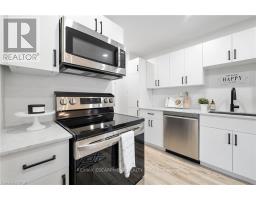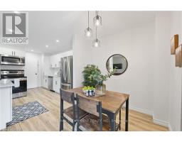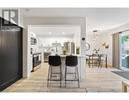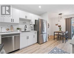 Stunningly renovated 3-bedroom, 1-bathroom two-storey condo townhome in St. Catharines desirable Carlton neighbourhood. Tucked away at the back of a quiet, family-friendly complex, this home offers added privacy, a fully fenced backyard, and a stylish, move-in ready interior. Features a bright, open-concept main floor with new vinyl plank flooring throughout, large principal rooms, and a custom kitchen with modern cabinetry, stainless steel appliances, quartz countertops, and a breakfast island. Sliding patio doors lead to a private yard with patio, green space, and a shed perfect for relaxing or entertaining. Upstairs includes 3 spacious bedrooms with contemporary finishes and a renovated 4-piece bathroom. The partially finished basement adds flexible space for a rec room, home office, playroom, additional bedroom or gym. Freshly painted throughout, move-in ready and located near parks, schools, shopping, and transit this home offers the benefits of condo living without compromising on space or lifestyle. (id:61594)